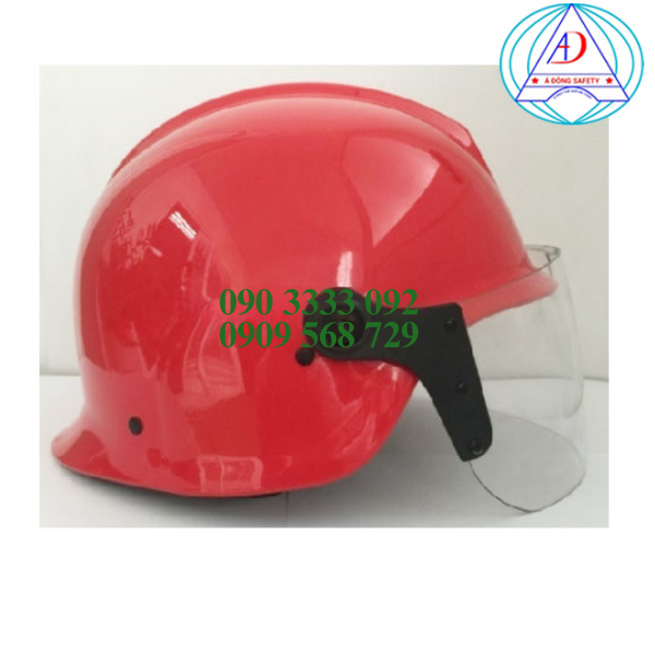 2. Cấu tạo, chất liệu: Thân mũ làm bằng nhựa ABS tổng hợp, có kích thước296x237x183 mm, bề dày ³ 04 mm, chịu va đập; phía trên đỉnh mũ có lớp vỏ xương sống vuôngchạy từ trước ra sau, hai bên thân mũ có cấu tạo lồi ra đểbảo vệ tai. Phía trước mũ có kính bảo vệ bằng nhựaPolycarbonate (PC) không màu, bề dày 02 mm, giúp cản bụi,gió, hơi nóng khi chữa cháy. Bên trong thân mủ có lớp xốpbảo vệ bằng chất polystyren dày ³ 20mm đểlàm giảm lực va chạm; lớp lót bằng sợi poly dày 02 mm; quai đeo và khóa làm bằng sợitổng hợp và nhựa Acetic có sức chịu tải, giúp giữ cố địnhmũ vào đầu khi di chuyển; có thiết bị tăng giảm cỡ đầu đểtăng giảm chu vi vòng đầu khi sử dụng.